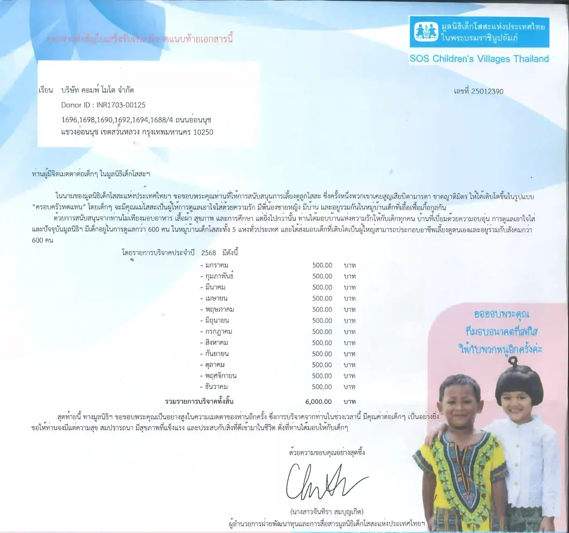 ในนามของ บริษัท คอมพ์ โมโต จำกัด เรามีความภาคภูมิใจที่ได้เป็นส่วนหนึ่งในการส่งมอบความช่วยเหลือแก่สังคม โดยในปี 2568 ทางบริษัทฯ ได้ร่วมบริจาคสมทบทุนให้กับ “มูลนิธิเด็กโสสะแห่งประเทศไทย ในพระบรมราชินูปถัมภ์“ อย่างต่อเนื่อง เพื่อสนับสนุนค่าใช้จ่ายด้านอาหาร การศึกษา และสุขภาพ ให้เด็กๆ ได้เติบโตในสภาพแวดล้อมที่อบอุ่นและมีคุณภาพชีวิตที่ดีขึ้น